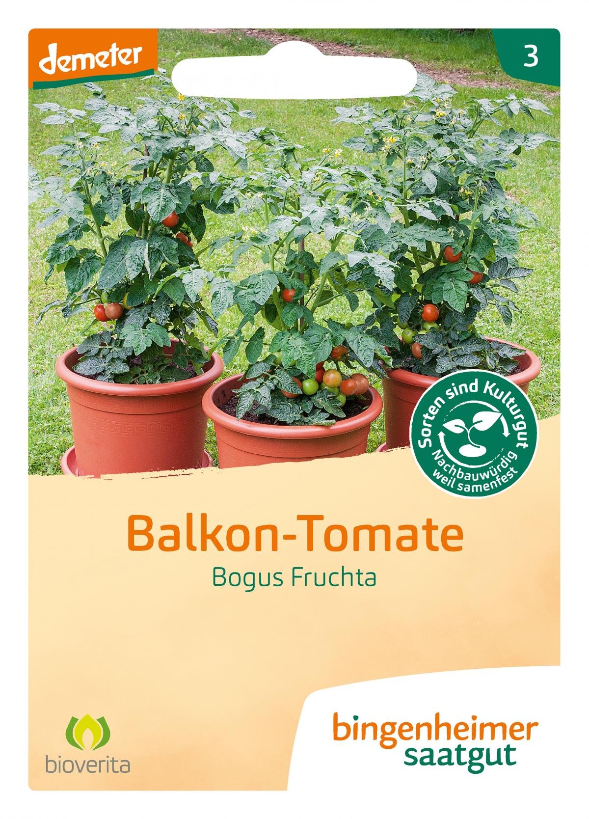 Frühreifende Buschtomatensorte mit fruchtig-süß schmeckenden Früchten. Durch ihr begrenztes Wachstum, Wuchshöhe bis 65 cm, für den Anbau in Pflanzgefäßen bestens geeignet. Tomaten nicht zu früh aussäen. Für den Hausgarten reicht Ende März/Anfang April. Die Keimtemperatur sollte ca. 24°C betragen