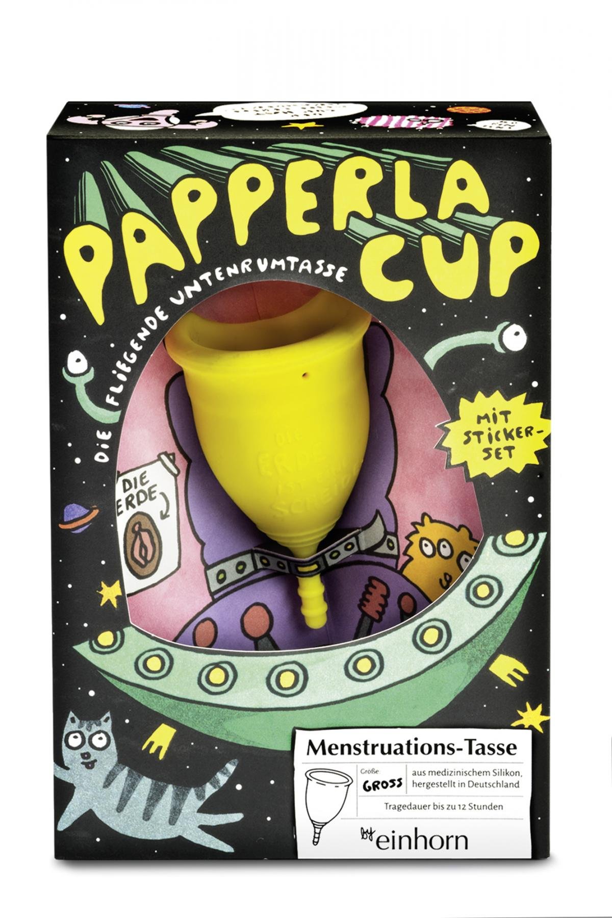 Endlich eine müllfreie Alternative: Die Menstruationstasse Papperlacup von einhorn ist eine Begleiterin für viele Jahre. Sie ist aus weichem medizinischem Silikon hergestellt und bietet optimalen Tragekomfort. Sie ist einfach in der Handhabung und macht so dich, deine Schleimhäute und die Umwelt glücklich.